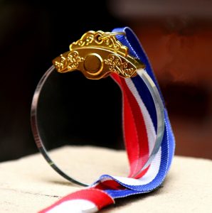 Hieronder ziet u twee materialen waaruit de medailles gemaakt kunnen worden: Glas en Metaal. Uw logo en tekst kunnen op deze materialen (in 3D) gegraveerd worden. Bekijk de galerij onderaan voor enkele voorbeelden. Kies het materiaal dat het beste bij u past en vraag daarna een offerte aan om de mogelijkheden te bespreken.