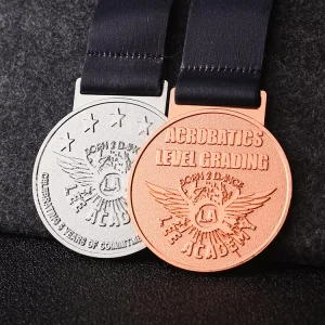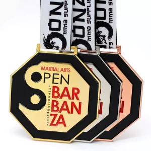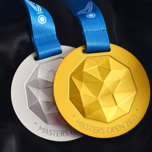 Deze metalen medailles zijn in alle denkbare vormen mogelijk, van vierkant en rond tot achthoekig. Afwerking met gedetailleerd reliëfwerk is mogelijk. Met opties in goud, zilver en brons zijn deze medailles perfect voor evenementen waar verschillende niveaus van prestatie worden erkend.